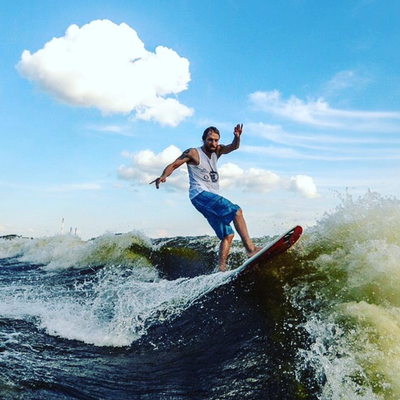Сергею 44 года и он не похож на обычного йога. Он катается на сёрфе, горных лыжах, досках, летает на вертолете, прыгает с парашютом — живет полной жизнью. И этому навыку учит на курсе.